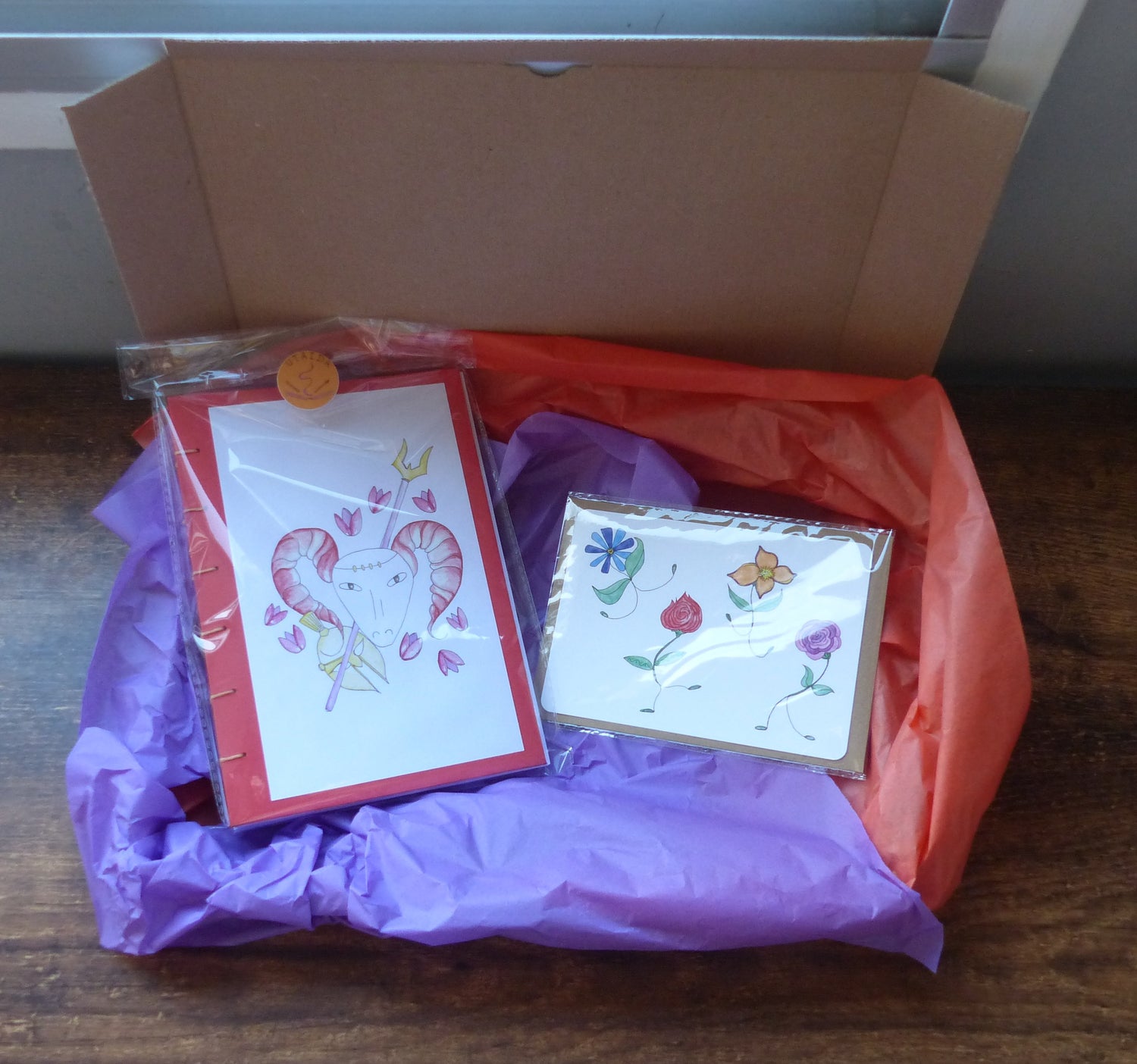 vous propose des carnets entièrement faits main illustrés, des cartes postales et un support à venir. Vous